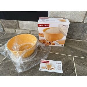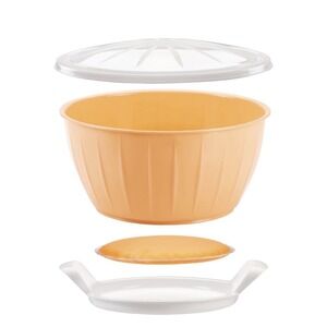 The Tescoma Dough-Rising Bowl with Warmer is a set of four solid yellow mixing bowls with a 4-quart capacity, ideal for making sourdough bread. The bowl comes with a lid and is made of durable plastic material. This tool is designed specifically for sourdough bread making, making it a convenient and practical addition to any baker's collection. This ball is excellent for preparing yeast dough very quickly. When shaking in the closed bowl, the content becomes perfectly mixed and rises up to two times faster things to the airtight lid and gel warmer. You do not need to check the rising time. The lid on the bowl becomes visibly bulged when the dough has risen completely. The bowl and the standard dishwasher safe. Do not wash the lid and the gel warmer in dishwasher, only the bowl. Instructions for use with the recipe are enclosed inside the box.