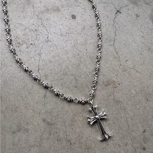 Stylish silver necklace with cross pendant. Iconic Chrome Hearts design. Perfect for any outfit.