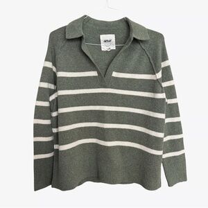 Aerie Unreal Striped Polo Oversized Sweater in Sage Green & White Size Medium