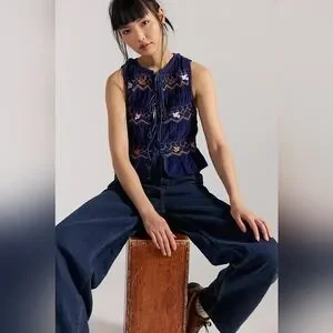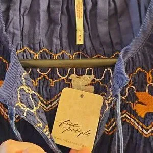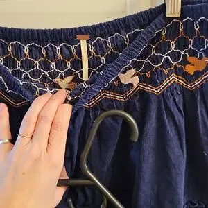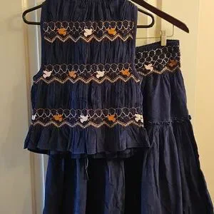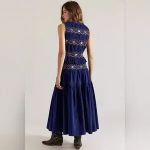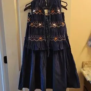 Free People, Terra Smocked Maxi Skirt Set, NWT, Size M, Blue, Navy, Smocked, Embroidered, Tiered Maxi Skirt, Crop Top, Two Piece Set, Bohemian, Boho Chic, Coastal Cowgirl, Festival Wear, Vacation, Summer, Spring, Flowy, Cotton, NWT, Sold Out Style