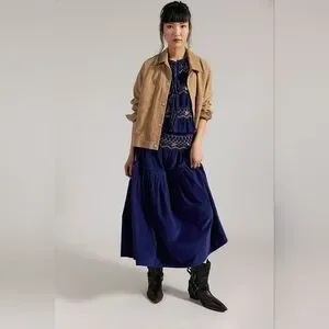 NWT! Free People Terra Smocked Maxi Skirt Set (M), Blue, Corduroy