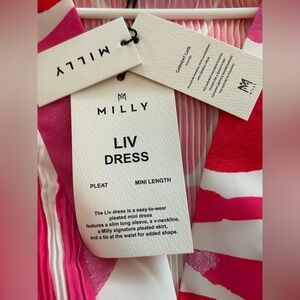 NWT, Milly LIV Dream Rose Pleated, Tie- Waist Dres