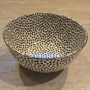 Thyme & Table Black/White Dot Stoneware Gold-Rimmed Bowl