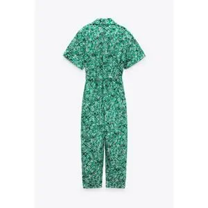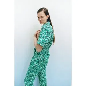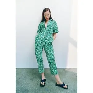Features: collar; zip up front; matching removable belt; side slant pockets; straight leg