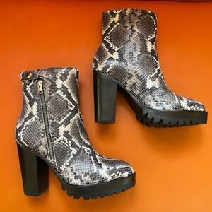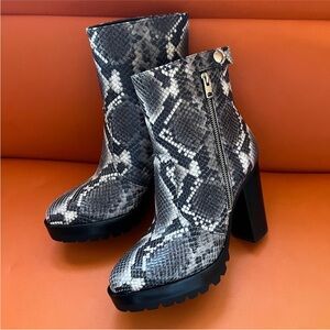 AllSaints Ana Snake Skin Embossed Lug Sole Platform Boot Size 38/ US 7 NWOB