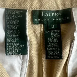 Lauren Ralph Lauren Tan 100% Cotton Flat High Waist Preppy Cargo Resort Shorts 8