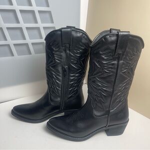 Steve Madden HAYWARD BLACK LEATHER boots Western Cowboy Boots Cowgirl Sz 6.5