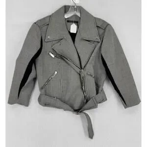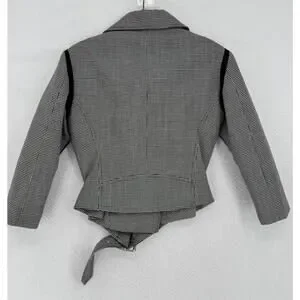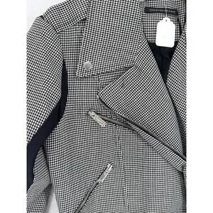 Christopher Kane Black White Houndstooth Wool Collared Moto Jacket Sz 8 NEW