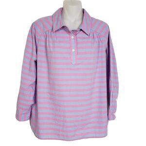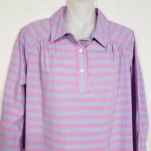 Vineyard Vines Womens Top Sz 6 Coastside Stripe Popover Light Magenta 3/4 Sleeve