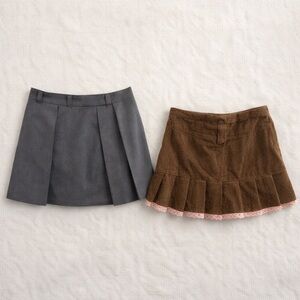 Lot of 2 trendy Y2K pleated Gray and Brown Mini Skirts - Uniqlo and Cider