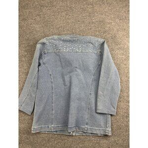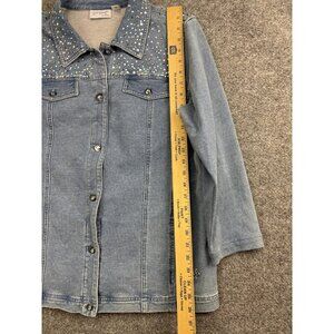 Quacker Factory DreamJeannes Jacket Womens Large Blue Denim Rhinestone Snap