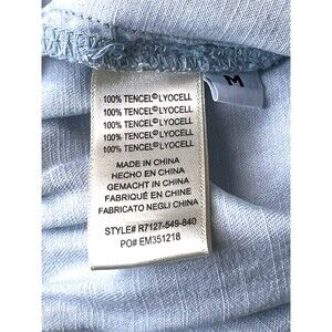Anthropologie CLOTH & STONE Light Blue Wide Leg High-Rise Cropped Pants Pull On Belted Pockets Fringe Tencel Chambray Lagenlook Women's Size Medium