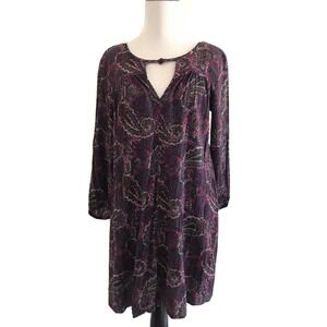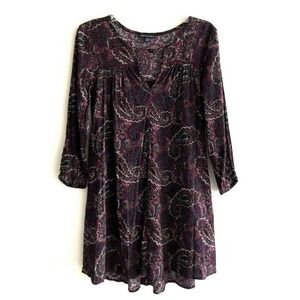 American Eagle Paisley Dress Womens Size M Purple 3/4 Sleeves Cut Out