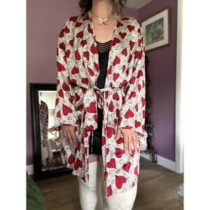 Vintage Victoria's Secret M/L 100% Silk Robe Gold Label Red White Hearts