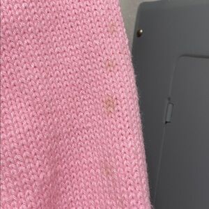 Stay cozy and stylish with this charming pink and cream sweater, featuring delightful blue accents. Perfect for adding a pop of color to your wardrobe.