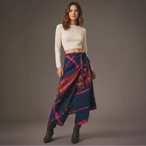 Bold color meets effortless movement in this Farm Rio x Anthropologie wrap skirt, Size Small. Designed in a vibrant multicolor plaid print, this statement skirt features a flattering wrap silhouette with adjustable tie-waist styling for a customizable fit.