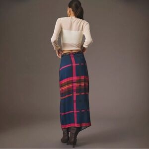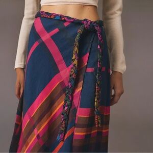 Farm Rio x Anthropologie Plaid Wrap Skirt Tie Waist Linen Blend Size Small