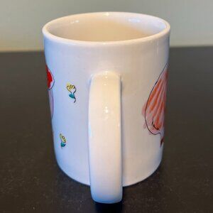 Whether you're gearing up for a day on the farm, or at an office in the city, add a touch of country charm to your morning coffee routine with this adorable pink pig ceramic mug. An artistic pig portrait with front legs (reminiscent of Ather Wood’s art) is featured on one side with the hog’s hindquarters (rear legs and rump) with a black curlicue tail on the other. Scattered tiny yellow flowers complete the design. Comfortable easy-to-grip handle. Measures 3.75” tall with a 3” diameter; 5” across including handle. Holds 10 fluid oz.