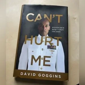 Hardcover edition of 'Can't Hurt Me' by David Goggins. Features a striking cover with gold and white colors.