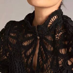 By Anthropologie Black Lace High Neck Blouse size M