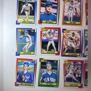 1990 Topps New York Mets trading cards + 27 cards in total + players shown in photos + cards have been stored in a binder since collected + very minimal wear if any on cards / please look at photos + if any additional photos are desired of cards please reach out + ships from 100% smoke free home