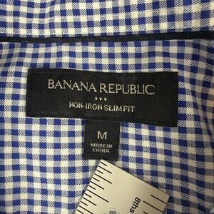 Banana Republic Non-Iron Slim Fit Dress Shirts Mens M Blue Pink Check Lot of 2