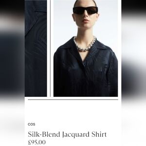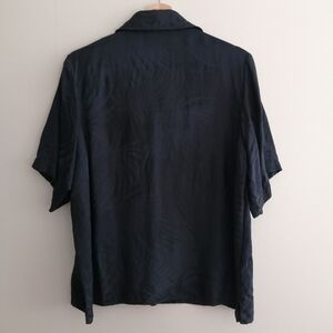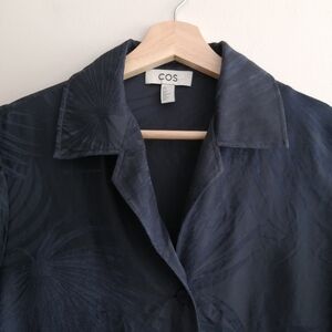 COS Silk Tencel Blend Jacquard Short Sleeve Button Up Navy Blue 8