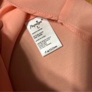 Elegant light pink top with a metallic beaded accent. Ideal for versatile styling. Beads at ends need to be secured but other than that she’s a perfect pretty in pink top!