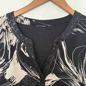 Women's plus-size blouse in size 2XL, black and beige with a floral pattern.