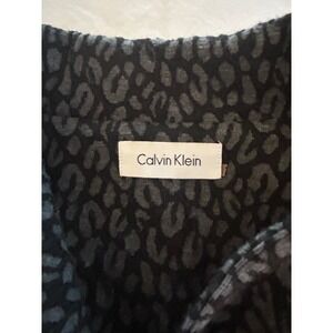 Calvin Klein Black Grey Leopard Print Mock Neck Sleeveless Sheath Dress Women's