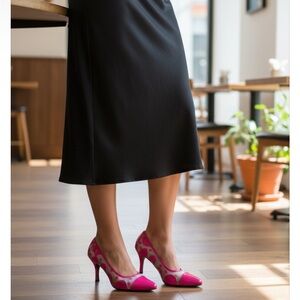 Step out in style with these chic pink heels. Perfect for adding a pop of color to any outfit. size 10