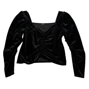 Express Black Velvet Ruched Long Sleeve Square Neck Top XL WhimsyGoth Witch Punk
