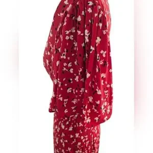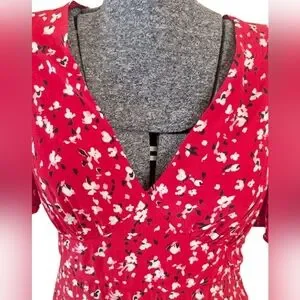 A New Day Red Floral V-Neck Flutter Sleeve Midi Dress Size 4 NWOT
