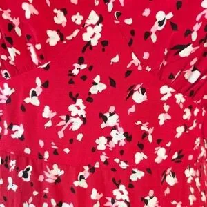 Color: Red with white, black, & pink floral print