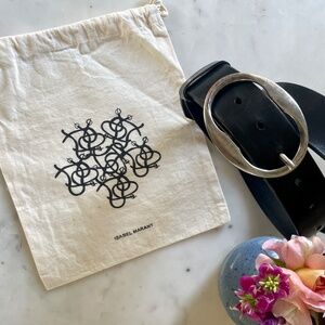 Isabel Marant Dara Black Leather Belt with Silver Belt Buckle