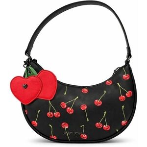 Stylish and chic, this black bag features a playful cherry print. Perfect for adding a touch of fun to any outfit.