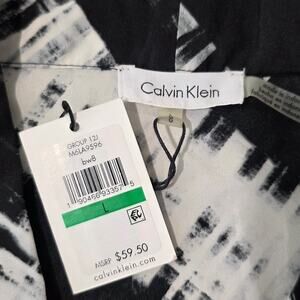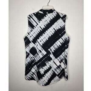 NWT Calvin Klein black white abstract v-neck sleeveless shirt blouse - large