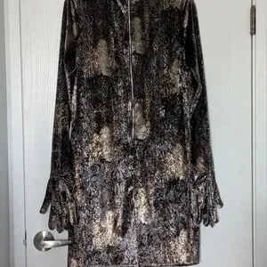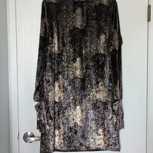Step out in style with this elegant long sleeve dress in black and gold. Perfect for any occasion, it combines sophistication with comfort.