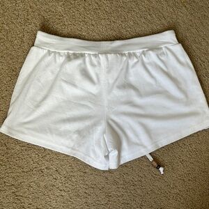 No Boundaries juniors shorts in white, size 3–5. These lightweight shorts feature a textured lace pattern with a comfortable elastic waistband and adjustable drawstring. Perfect for summer, beach days, lounging, or casual warm-weather outfits.