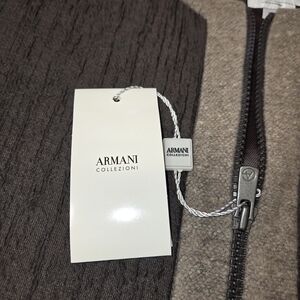 Includes original Armani Collezioni tags, internal RN/manufacturer labels, and authenticity booklet — all markers consistent with genuine Armani garments.