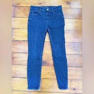 Chic and versatile dark blue skinny jeans. Flattering fit for any wardrobe.