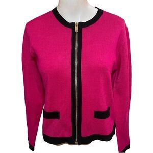 Zara Knit Black and Pink Cardigan with front Zipper and Contrasting Size S
