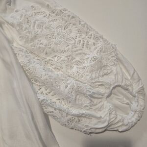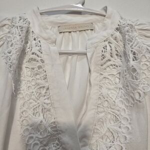 A truly beautiful and feminine top with delicate lace detailing and soft balloon sleeves. Elegant, romantic, and very flattering. Perfect condition