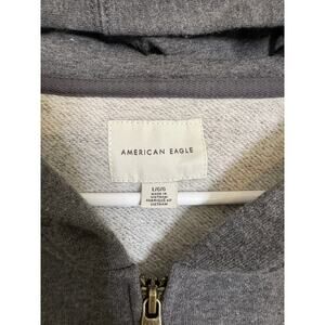American Eagle Full Zip Hoodie Fleece Jacket Size Large Gray Graphic Pockets EUC