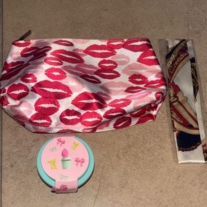 Lip Print Makeup Bag with Beauty Sponge Case and twilly