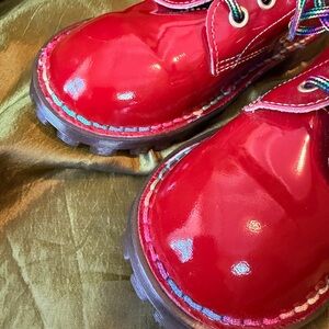 Dr. Martens Vintage Red Leather Boots With Rainbow Stitching