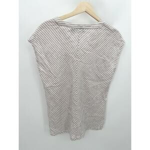 Tahari Top Women SMALL Purple White Striped V-Neck Cap Sleeve 100% Linen