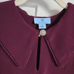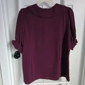 Elevate your wardrobe with this elegant burgundy top from CeCe. Featuring stylish puff sleeves and a chic collar, it's perfect for any occasion.