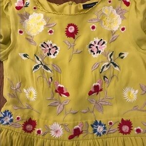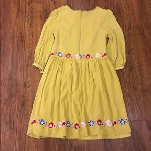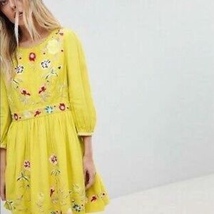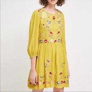 French Connection Saya fit & flare long sleeve dress size 8 yellow dress with gorgeous embroidered flowers. Beautiful for boho spring look