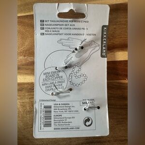 Stylish Kikkerland nail clippers with a sleek design. Includes a convenient chain for easy carrying. Ideal for grooming needs. Please note the packaging has a tear at the top where it hung from the retail shelf. This item is new and comes from a smoke- free home.